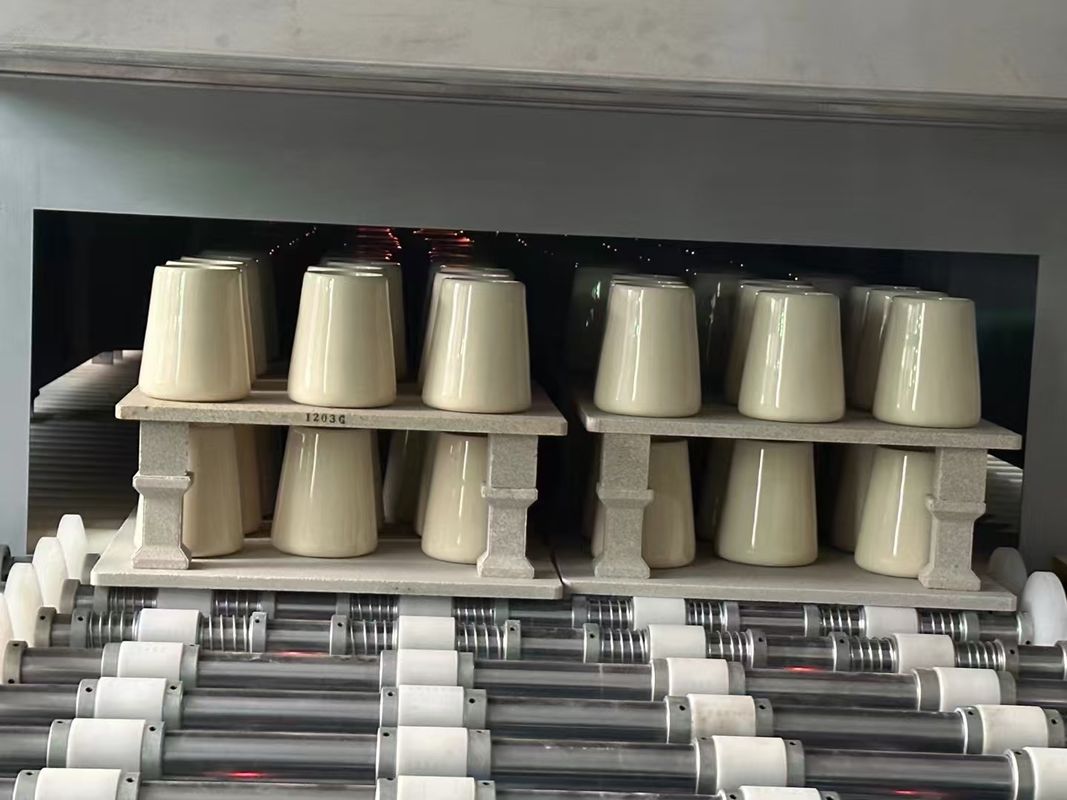 Hochfeste Rollen: Der Ofen verfügt über hochfeste Keramikwalzen, die eine reibungslose und gleichbleibende Bewegung der Keramikgegenstände durch den Ofen gewährleisten.